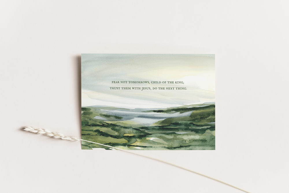 Watercolor greeting cards with an encouraging reminder to trust our sovereign God with tomorrow from the poem, “Do the Next Thing.”