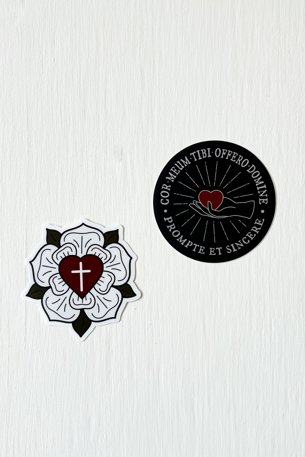 Original designs from Sola Gratia Co. made into durable, matte vinyl 3” stickers. Scratchproof and waterproof.